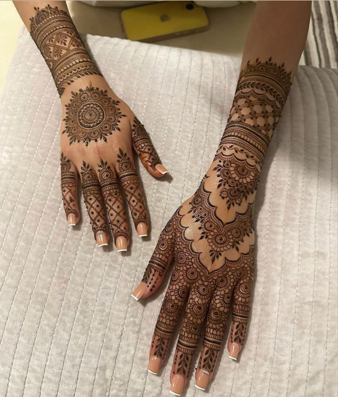 Henné jusqu’au milieu de l’avant-bras ou jusqu’au coude