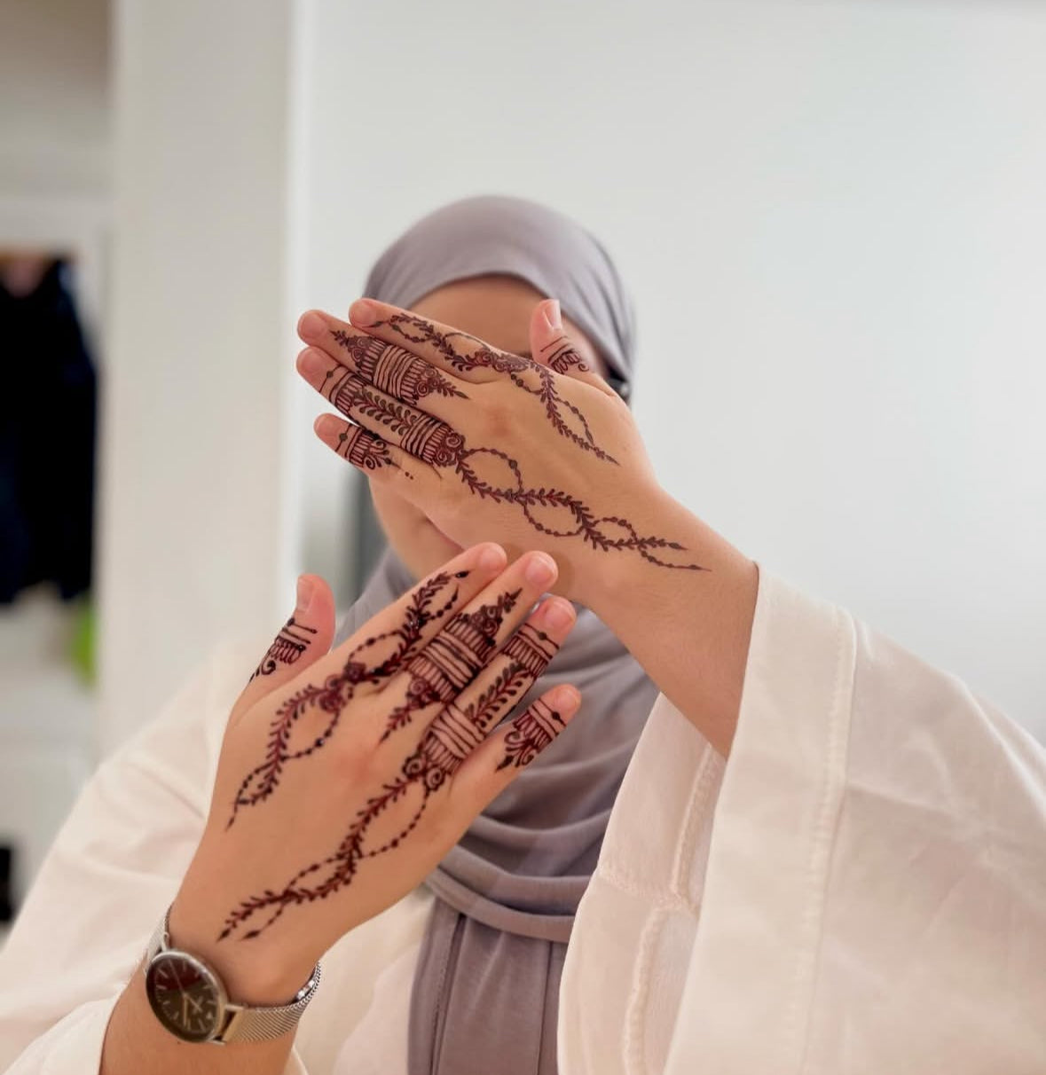 Notre henné rouge est un hommage aux traditions anciennes tout en restant résolument moderne. Nos ingrédients naturels et de haute qualité assurent une application douce et sécuritaire, laissant un éclat sensuel et une sensation soyeuse. L'attention minutieuse aux détails dans chaque motif garantit une œuvre d'art éphémère qui durera longtemps dans les mémoires.